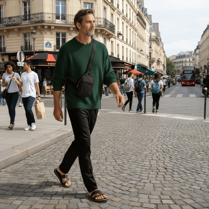 Notre sacoche vous libère les poches et les mains, transporte uniquement l’essentiel et allie praticité et style à chaque déplacement.